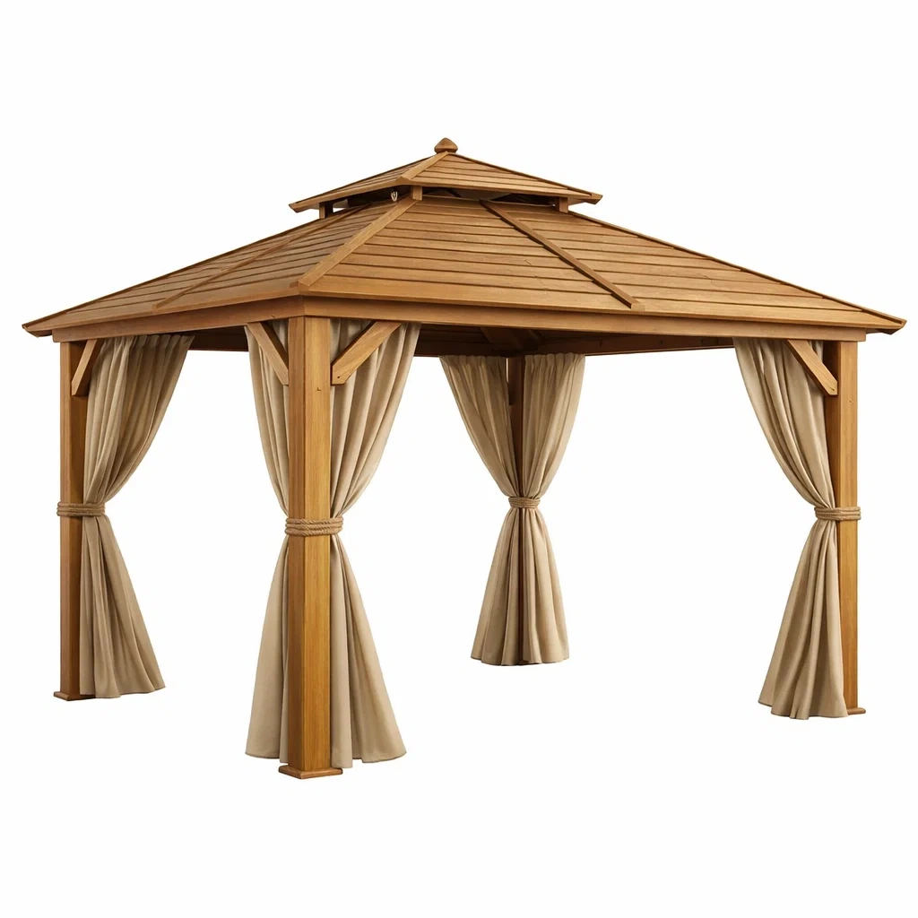 Gartenpavillon aus Massivholz mit Polyester Vorhängen